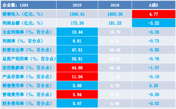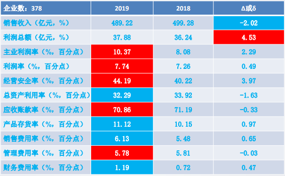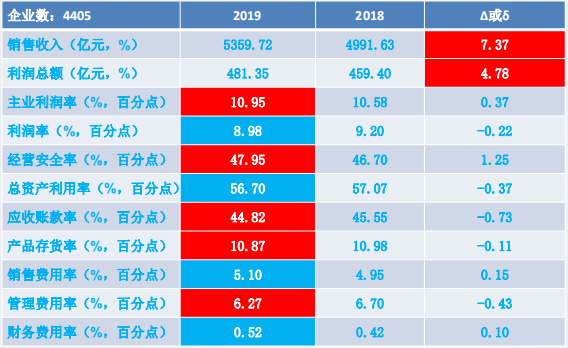 實現主營業務收入5359.72億元,同比增長7.37%、 比上年下降1.70個百分點。 凈增368.09億元,比上年的492.38億元減少25.24%。企業主營業務收入平均規模12167萬元,同比增加836萬元。