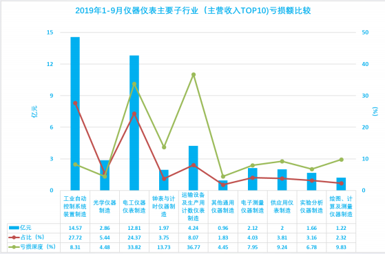 1.19 2019年1-9月儀器儀表主要子行業(主營收入TOP10)虧損額比較
