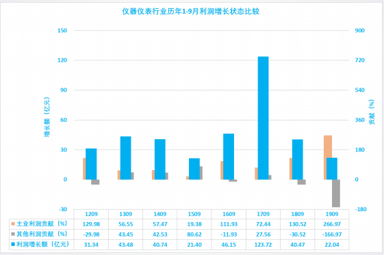1.3.1 儀器儀表行業2019年1-9月主業利潤波動分析