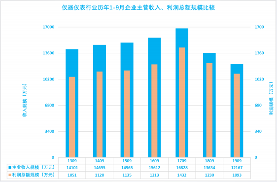 2.7 儀器儀表行業歷年1-9月企業主營收入、利潤總額規模比較
