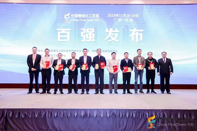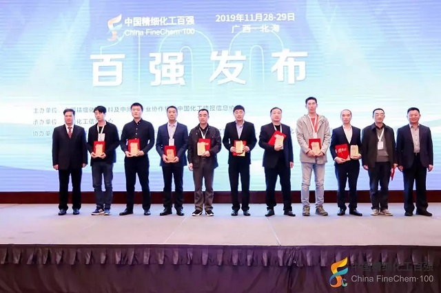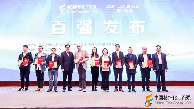 2019年11月28日,在由全國精細化工原料及中間體行業協作組、中國化工情報信息協會在廣西北海聯合主辦,中國化工信息中心承辦,北海市鐵山港區人民政府、北海市鐵山港(臨海)工業區管理委員會協辦的“第十九屆國際精細化工原料及中間體(鐵山港)峰會暨2019中國精細化工百強發布會”上,公布了“2019中國精細化工百強”榜單。