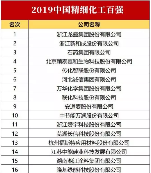 必看 | 2019中國精細化工百強榜發布了!