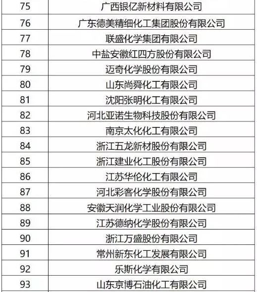 附“2019精細化工百強”名單: