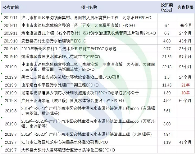 事實上,這只是EPCO類水環境項目的高光時刻,近期出現的同類項目已小有氣候,還有一波未開啟招標的也正在趕來的路上。近期典型水環境EPCO項目如下表所示: