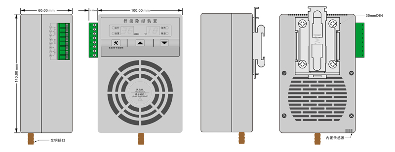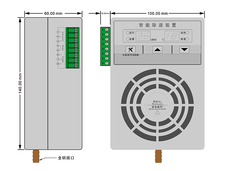 智能型除濕裝置是采用半導體制冷除濕方式,主動將密閉空間的潮濕空氣在風扇的作用下吸入除濕風道,空氣中的水汽經過半導體制冷機構后冷凝成水,再通過導水管排出柜體,可以達到很好的除濕效果。通過減低空氣中含水量,使相對濕度和絕對濕度同時下降,幾乎不提高溫度,不產生溫差帶來的負面影響,從根本上杜絕或減少了事故的發生,也不會因高溫而加速柜內器件及柜體的老化。智能型除濕裝置把被動防止凝露方式,改為主動引導凝露,有效的防止柜內設備老化、絕緣強度降低、二次端子擊穿、材料霉變及鋼結構件銹蝕等安全隱患,保證電網安全運行。