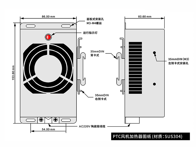 (4)采用雙溫控開關,確保出風口溫度(出風口溫度≤55℃,200W);