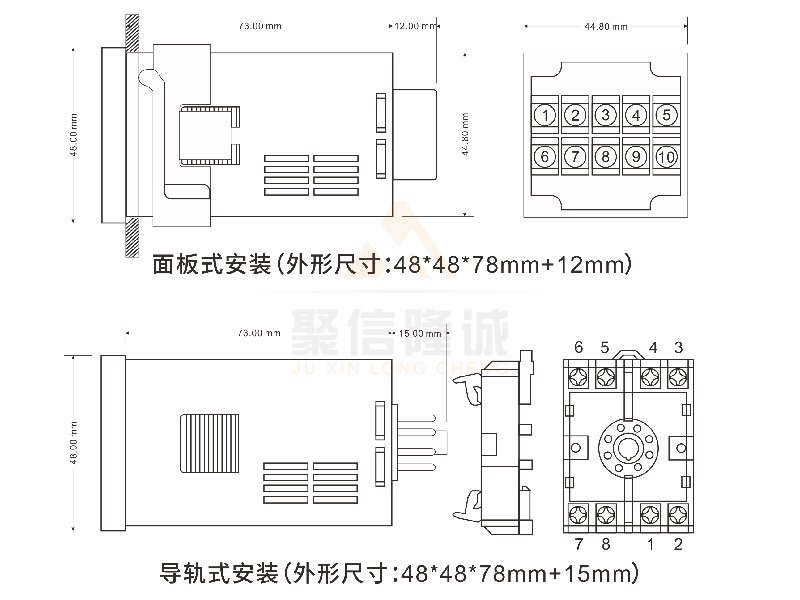 安裝方式:導軌式安裝,面板式安裝(開孔尺寸:45X45)